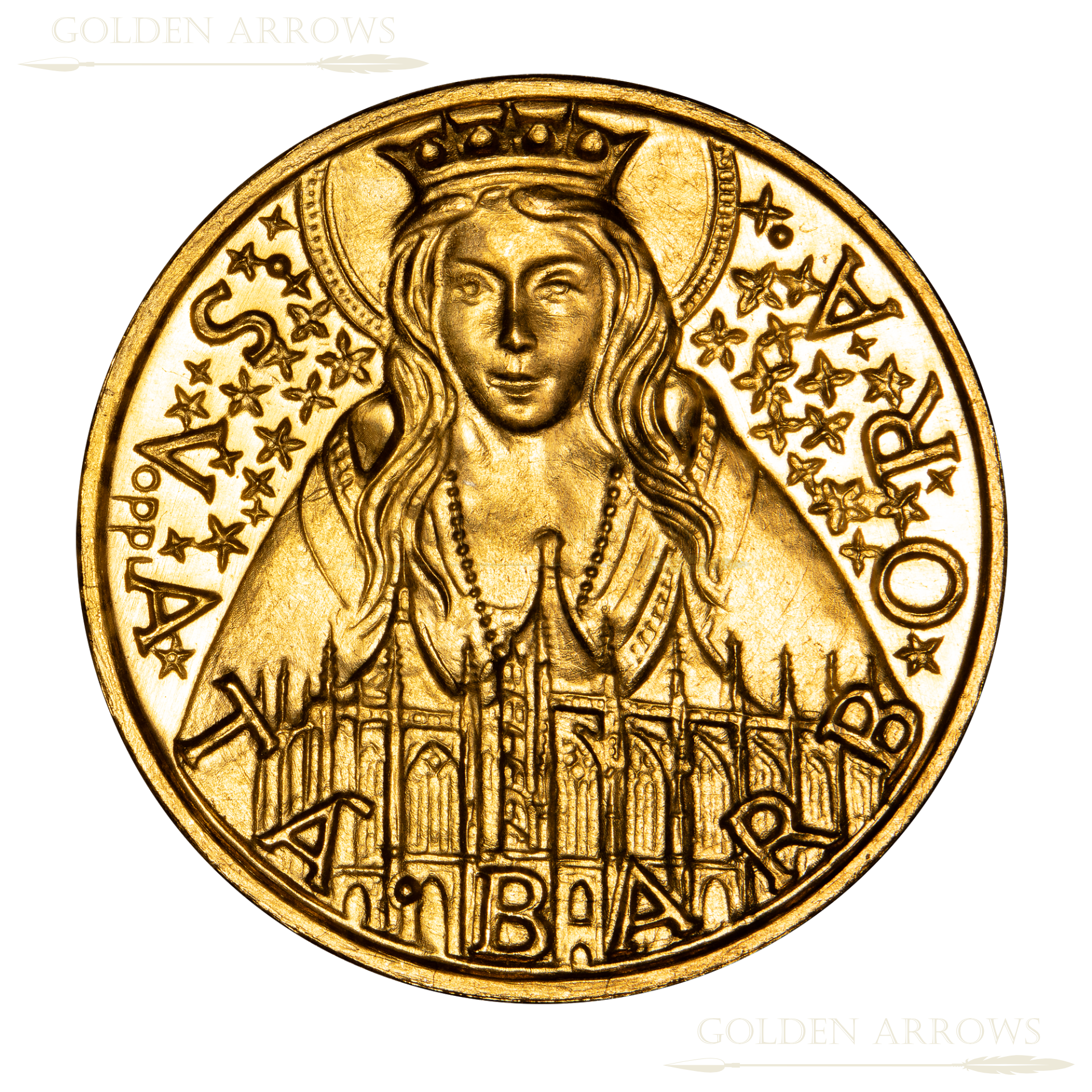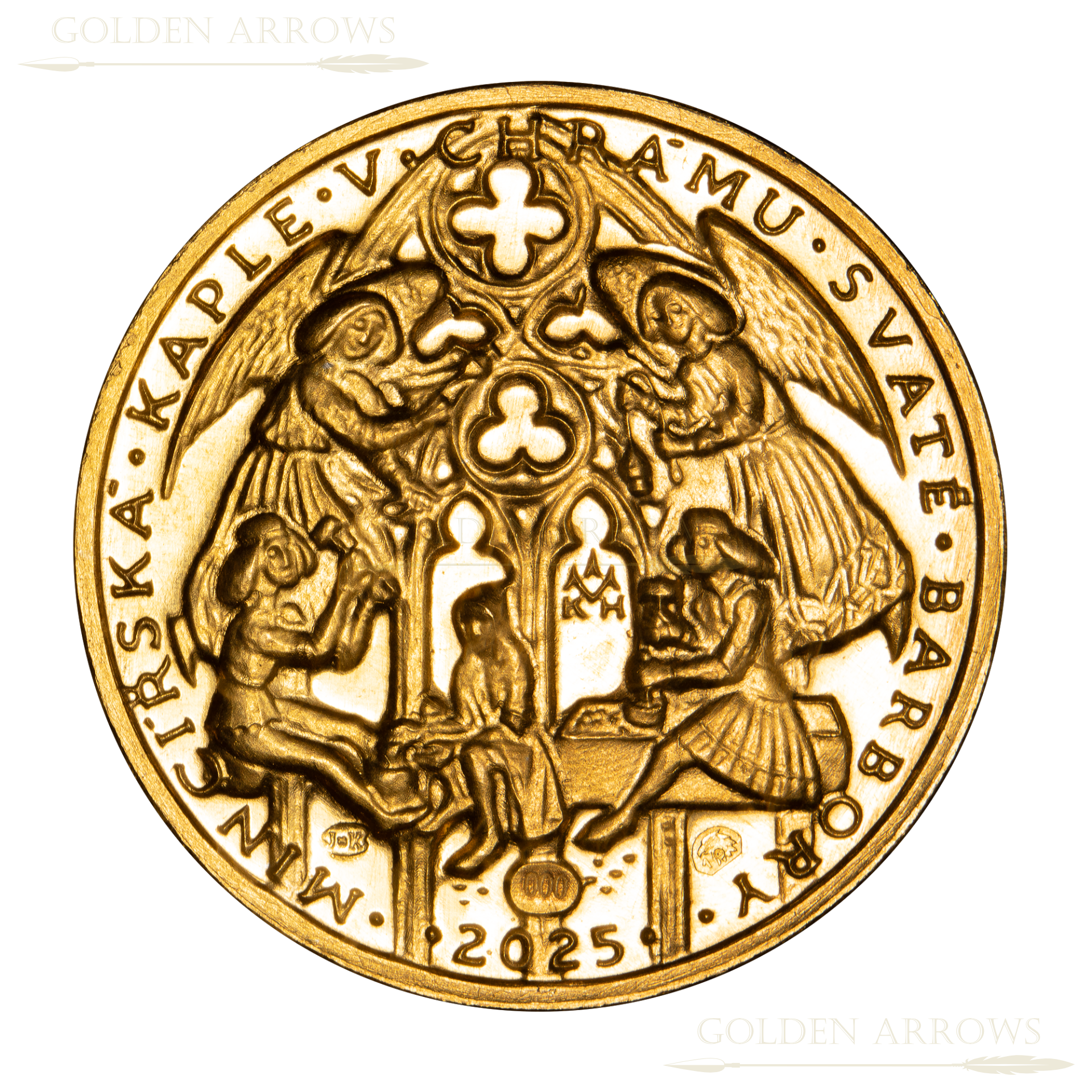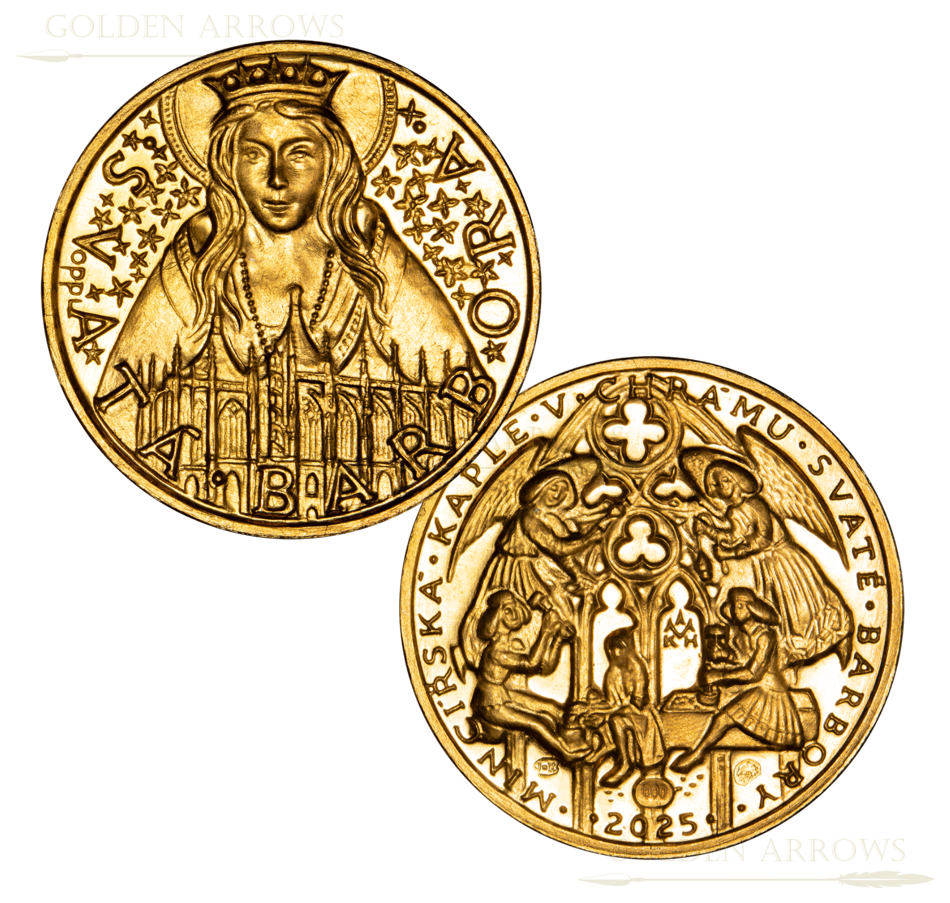 První Svatobarborský Dukát 2025 Vyražen Kutnohorskou mincovnou na památku světice sv. Barbory a památku mincovnictví v Kutné Hoře.