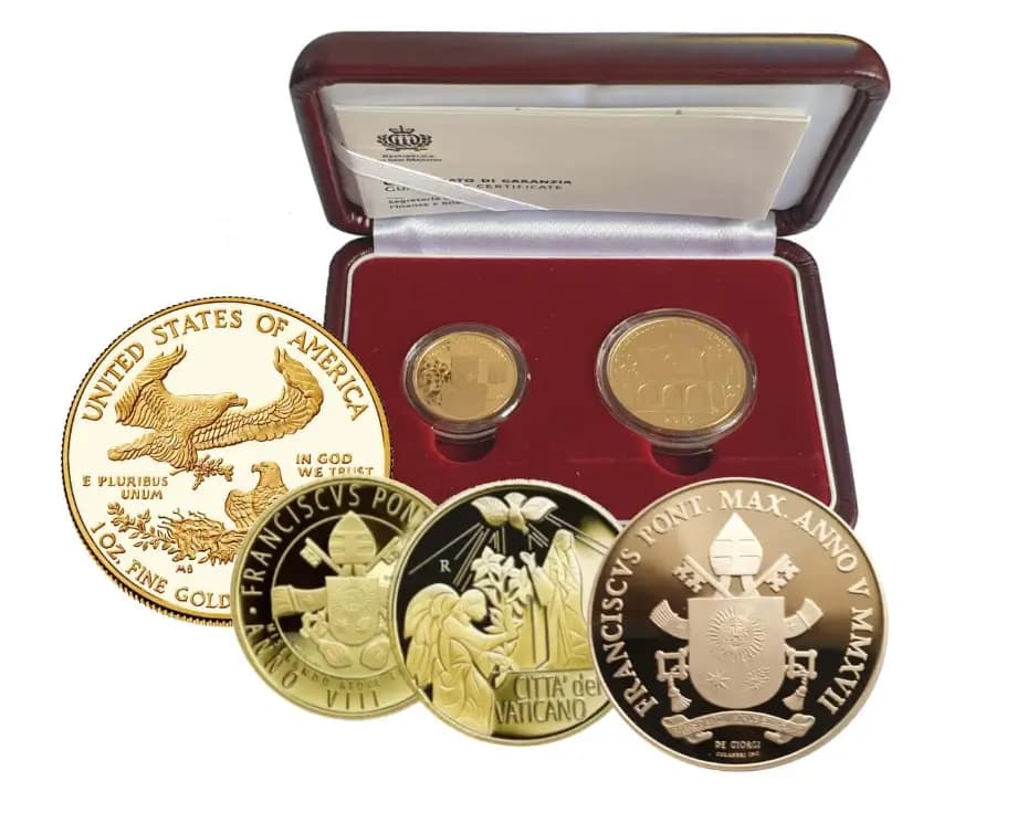 Pamětní zlaté vatikánské mince - sada PIVUS VII Dvousté výročí úmrtí papeže Pia VII. vydáním zlaté mince v hodnotě 20 € Papež GREGORIVS XV 400 výročí úmrtí 50 €